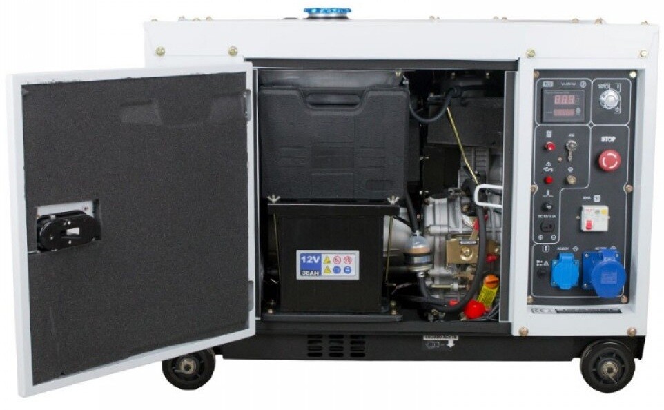 Объем резервуара для топлива составляет 28 литров, что дает возможность работать до 22 часов без дозаправки. Запуск осуществляется электростартером, также генератор совместим с системой автоматического ввода резерва (АВР) (приобретается отдельно). При доукомплектации таким блоком модель будет самостоятельно включаться в случае внезапного отключения электроэнергии, обеспечивая непрерывное электроснабжение.