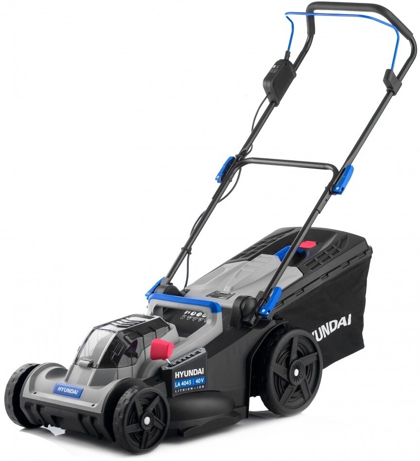 - газонокосарка оснащена акумуляторним приводом, полегшуючи маневрування та роботу на середніх за площею газонах;